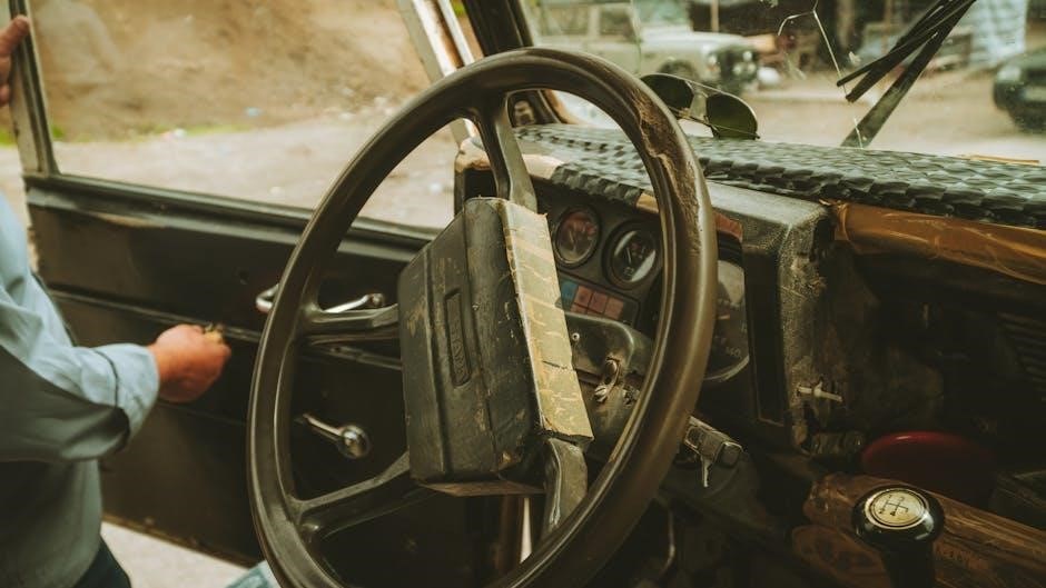 In case of an emergency‚ stay calm and assess the situation. Move your vehicle to a safe location‚ such as the shoulder‚ to avoid obstructing traffic. Turn on hazard lights to alert other drivers. If involved in an accident‚ check for injuries and call 911 immediately. Exchange information with other parties‚ and document the scene if possible. Keep an emergency kit in your vehicle‚ including items like a first-aid kit‚ flashlight‚ and jumper cables. Always prioritize safety and follow proper protocols to handle emergencies effectively.